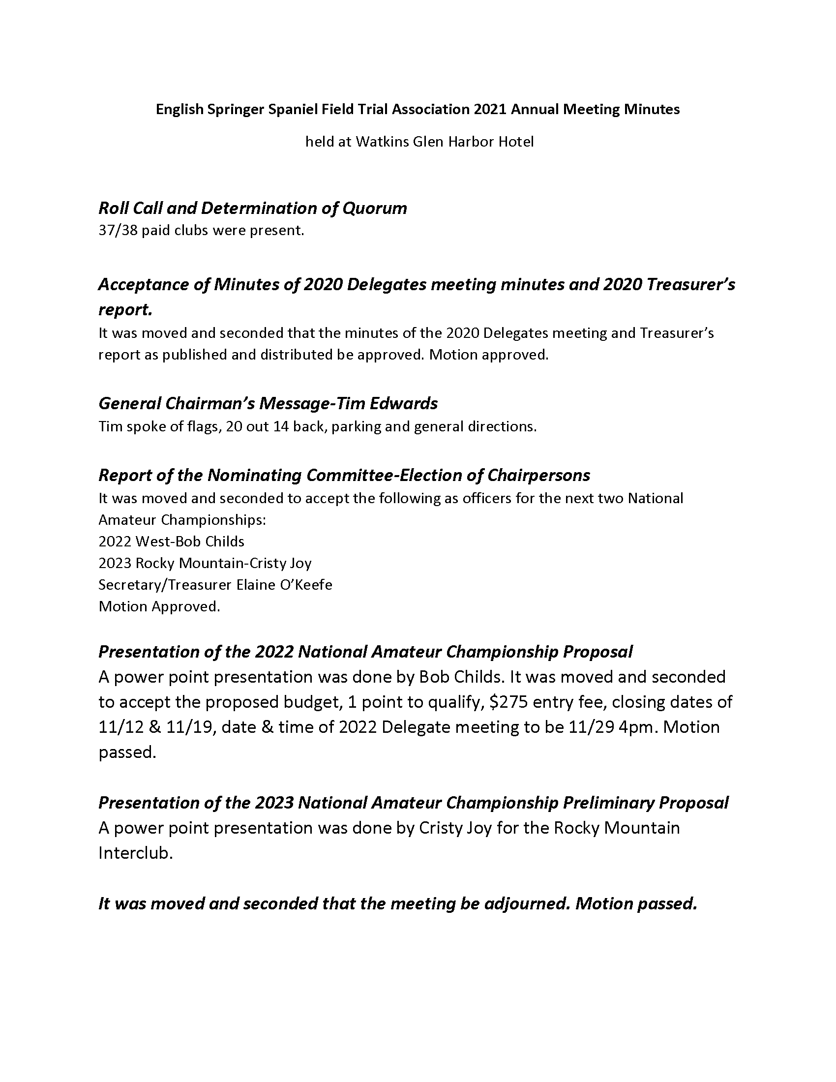 Committee Members – Bob Child, Chairman; Paula and Gary Fluckiger Field Trial Chairs, Committee Members: Josh Riddle, Charles Tatton, Cristy Joy, Brent Blundell, Alan Baugh, Jim Keller and Mark Mathiesen.