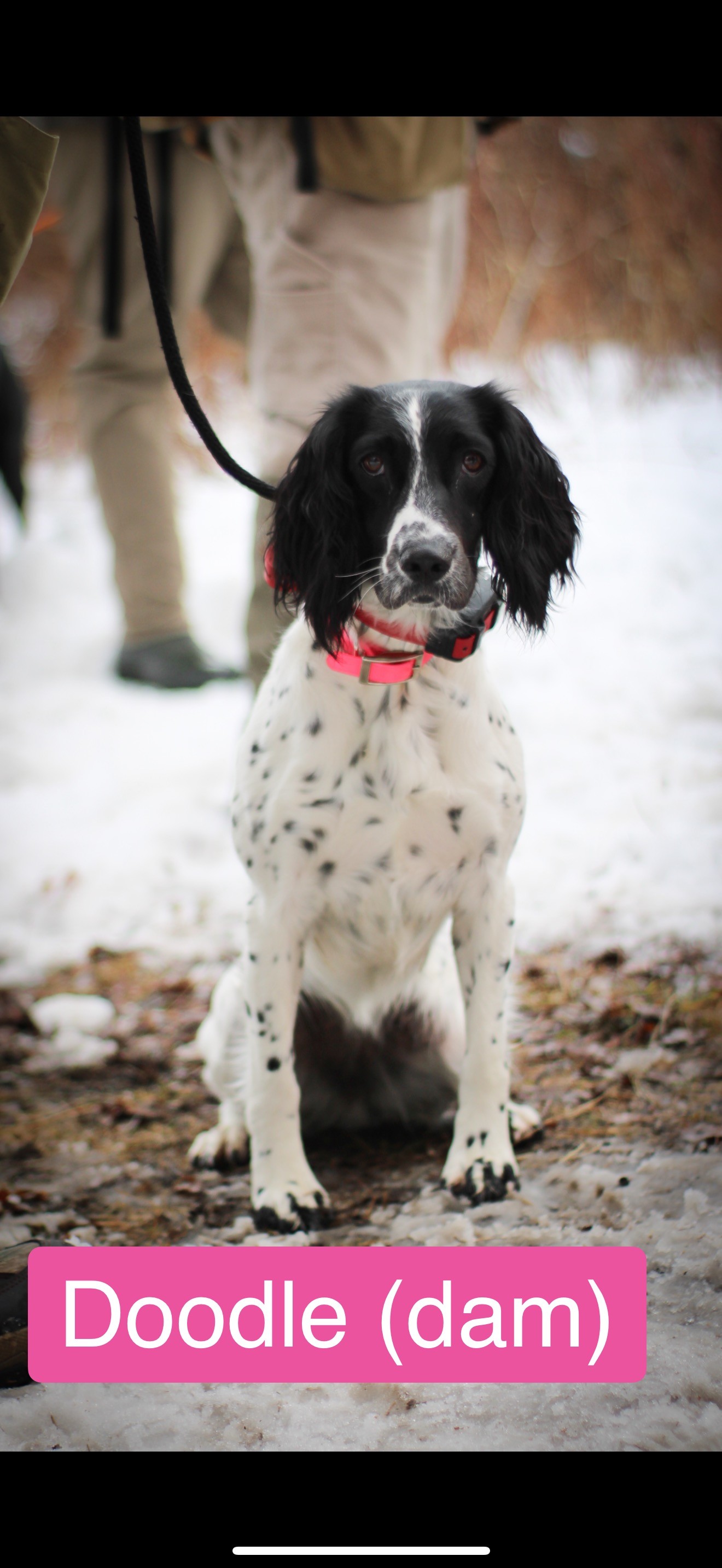 granddaughter of two time national field champion, field champion, amateur field champion. OFA clear eyes and hips, clear Embark DNA profile