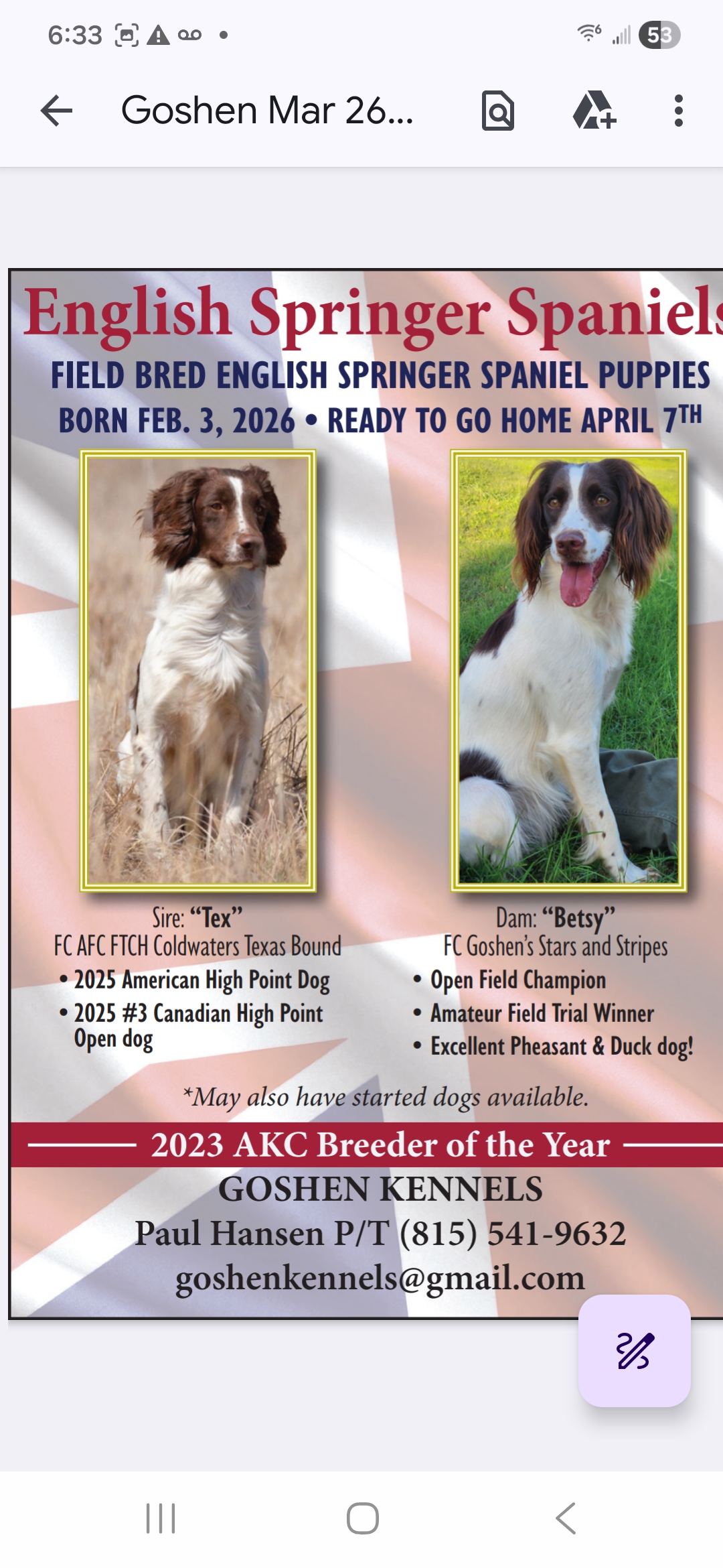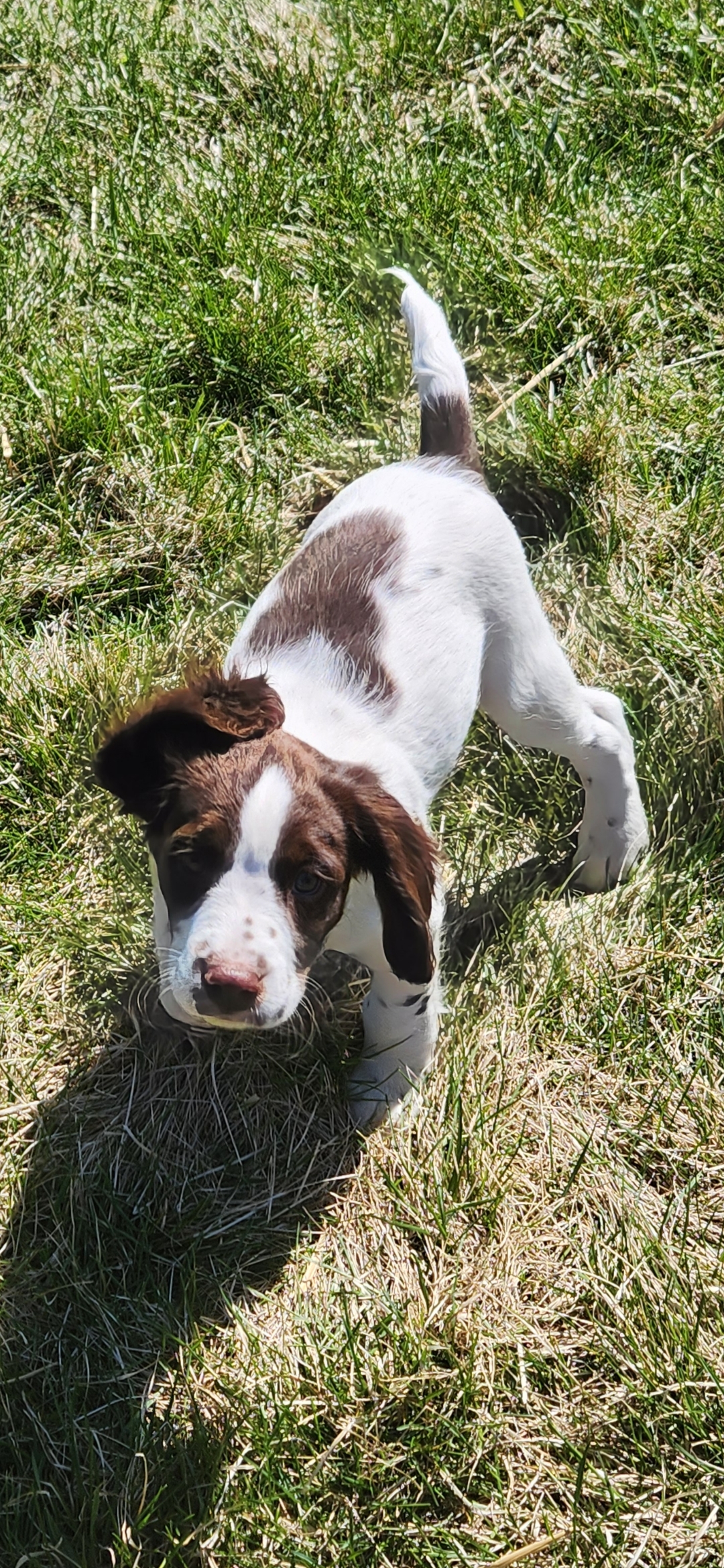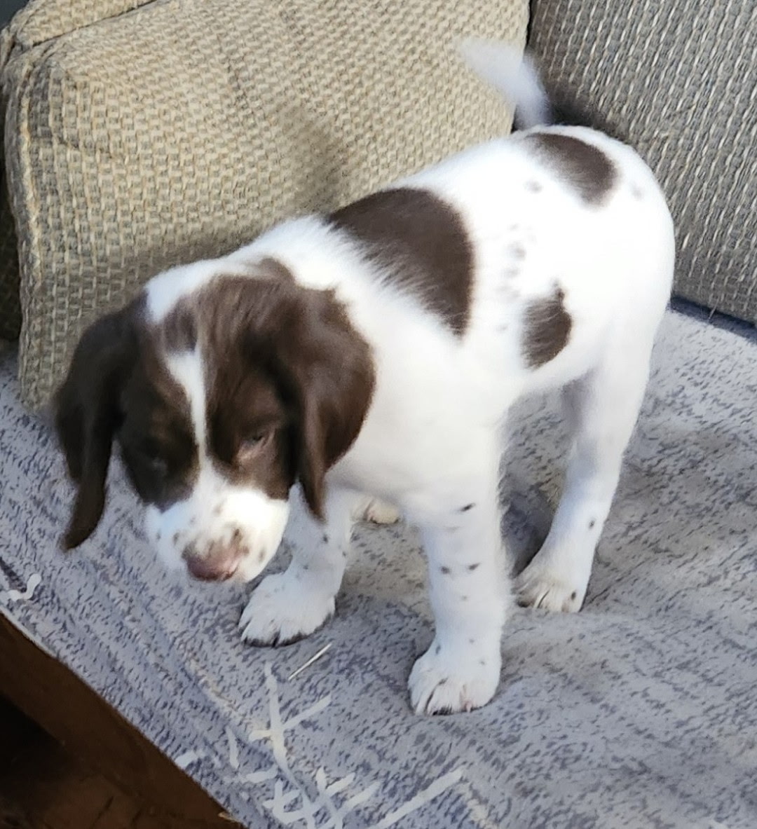 Tails docked to field trial length (2/3rds)Dewclaws removed