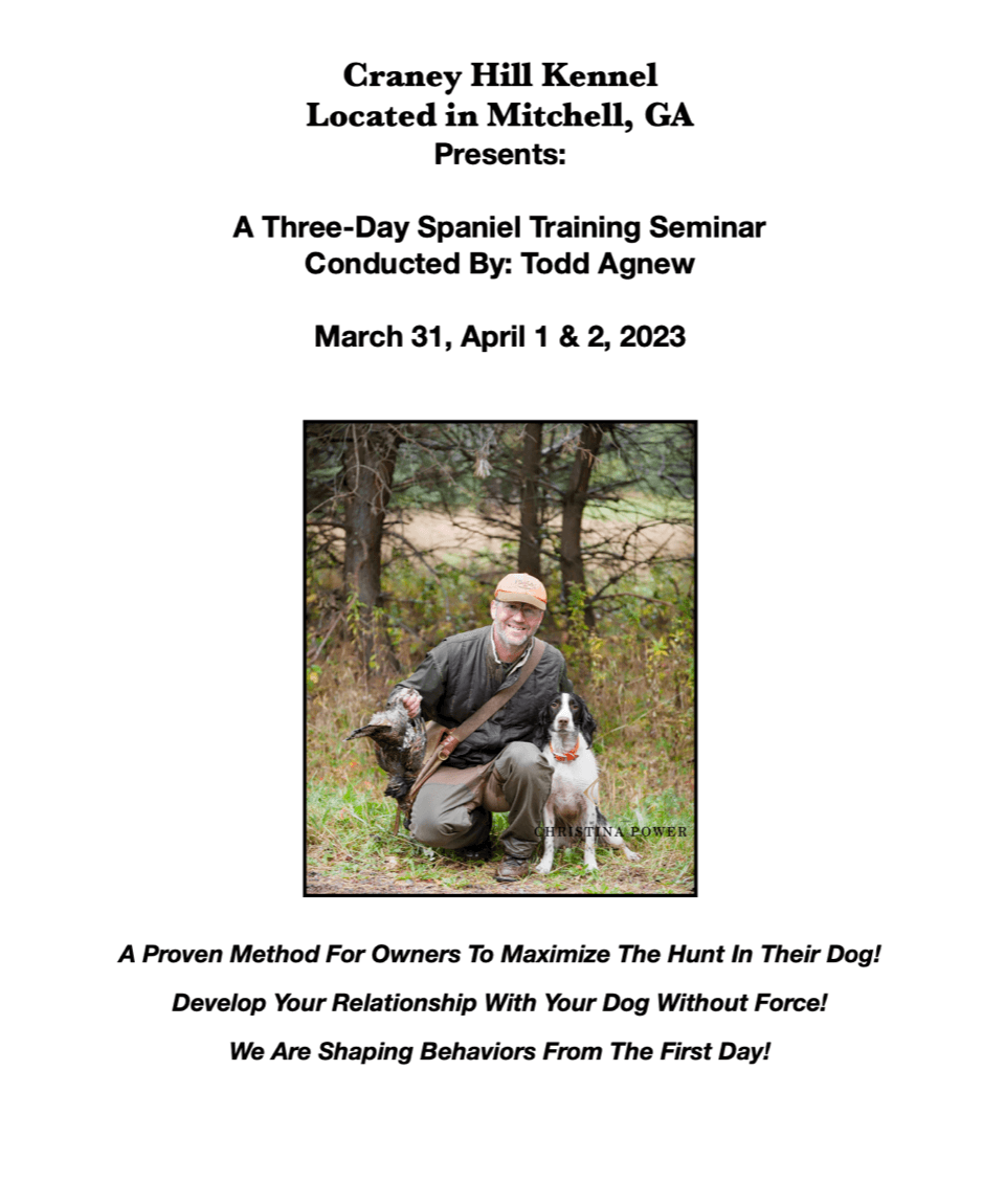A Three-day Spaniel Training Seminar! March 31, April 1 & 2, 2023