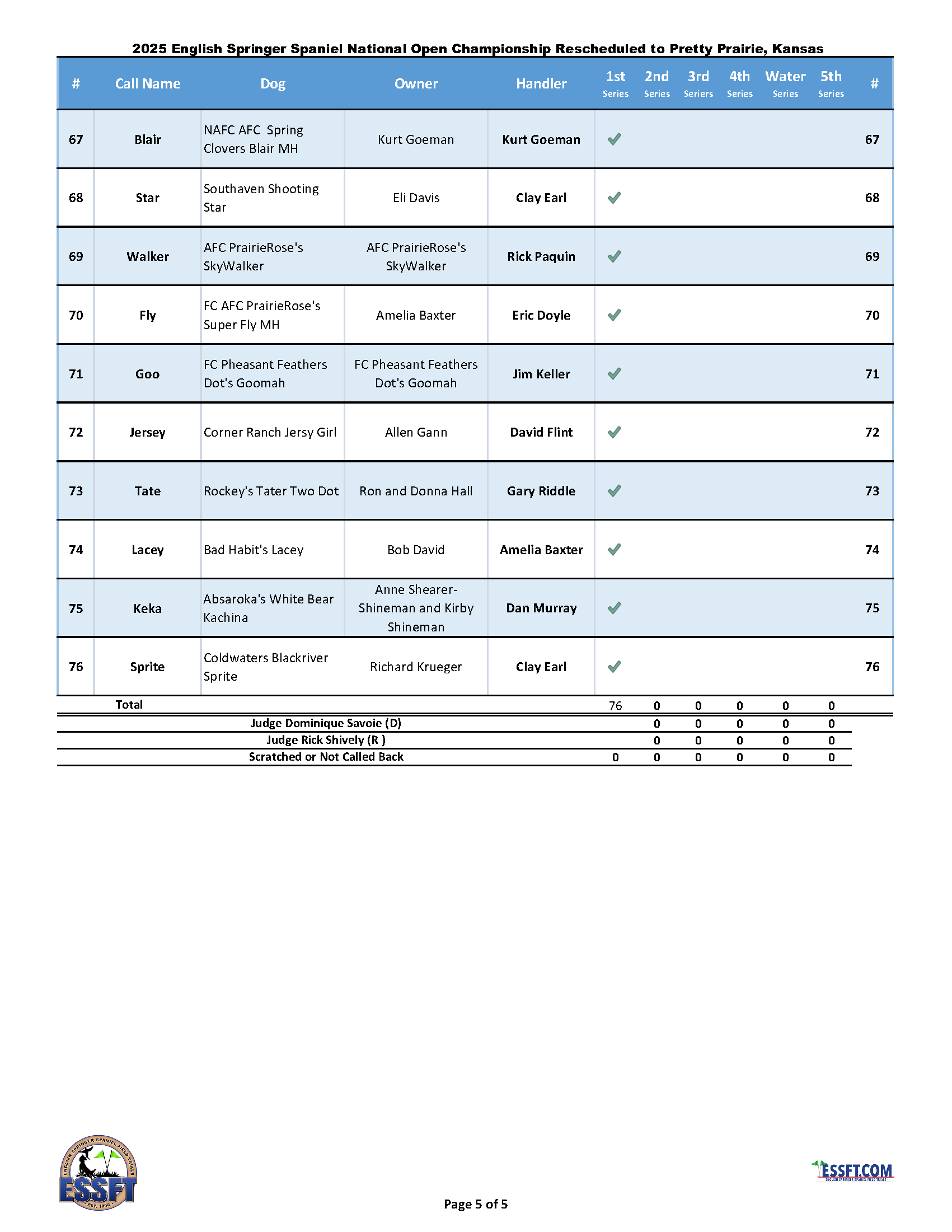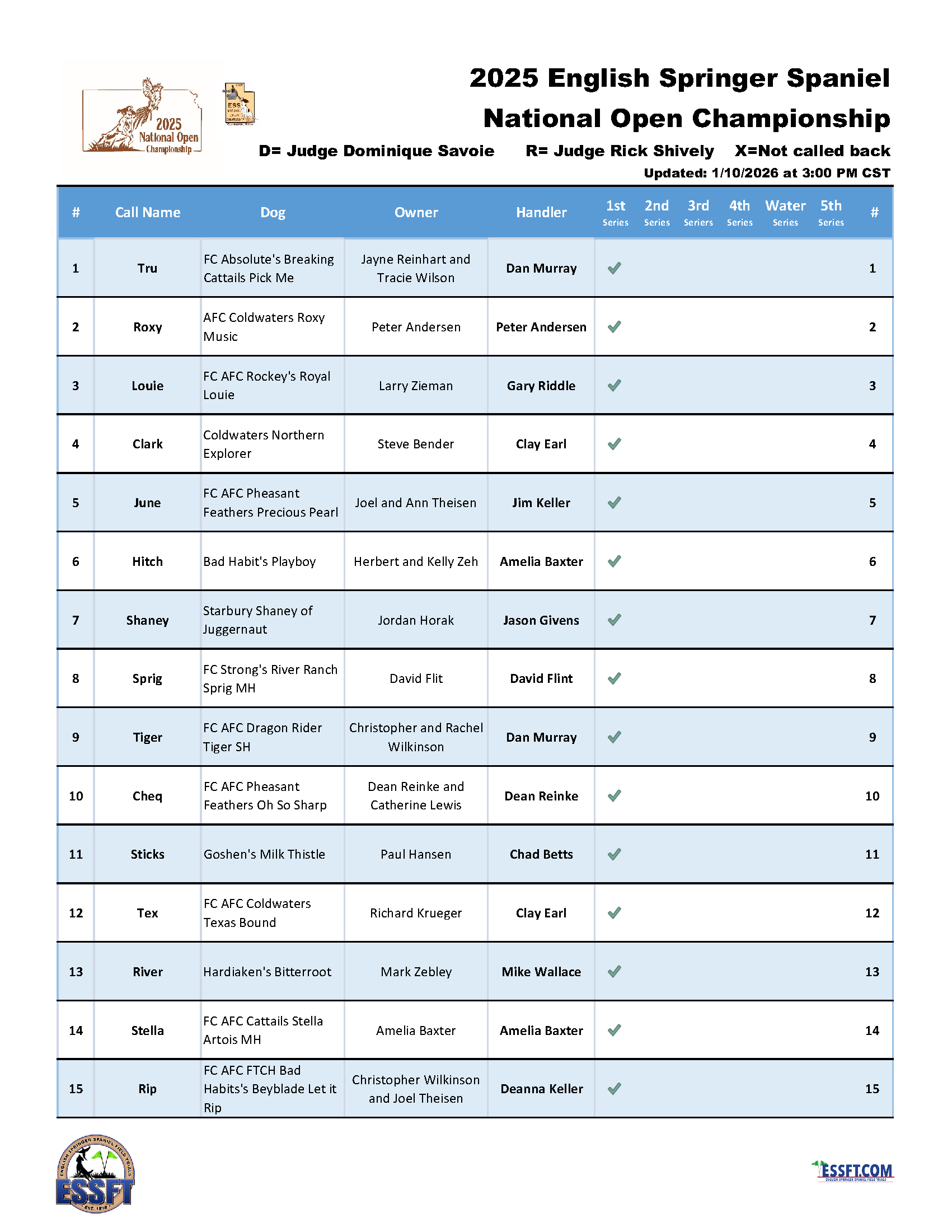 A quick reminder that the Handlers Meeting and UTV Meeting will be held at 7:40 a.m., with the first series starting sharply at 8:00 a.m. Please plan accordingly so we can stay on schedule.